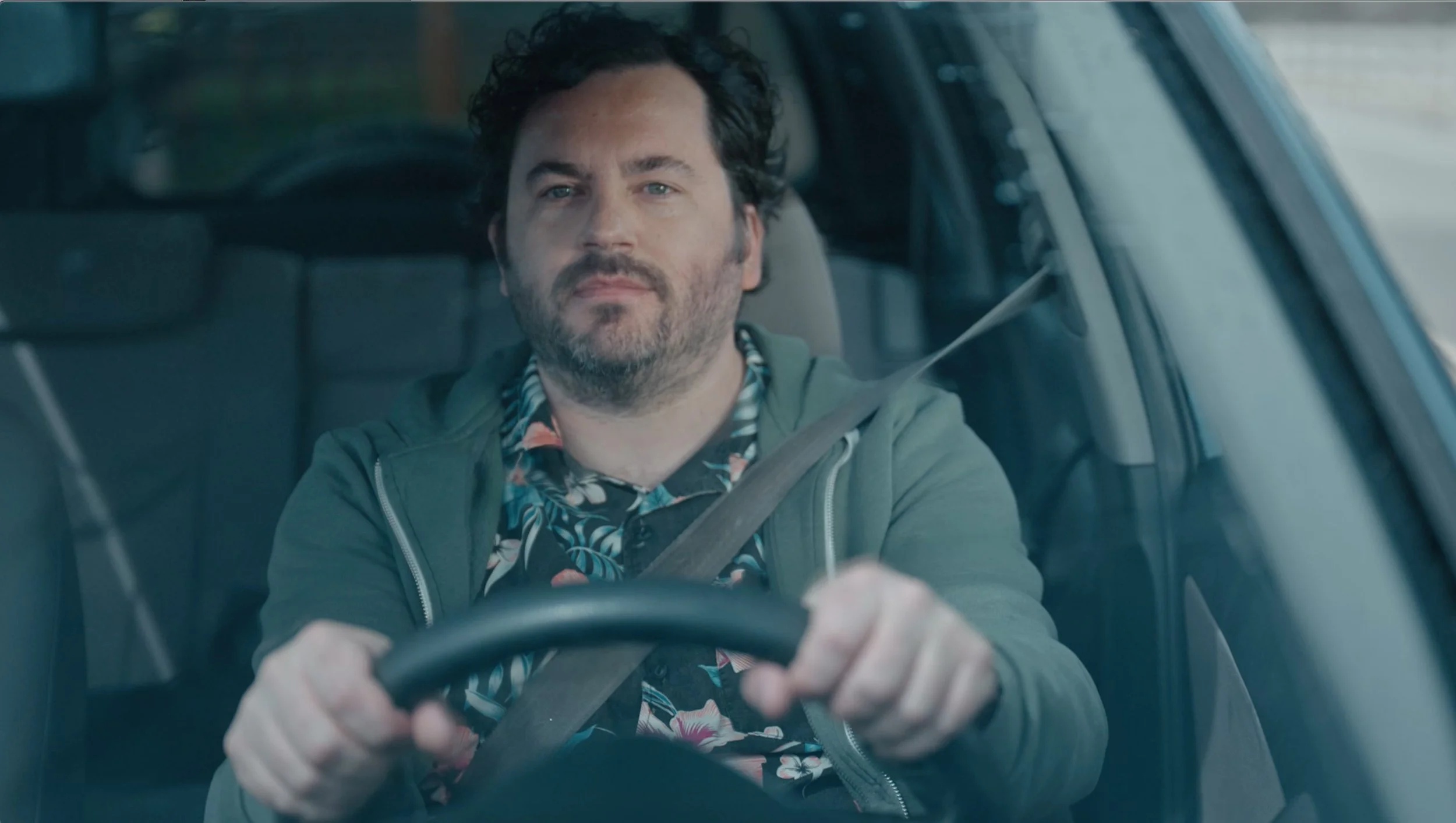 Solution: We show a typically scary slide-out turn into a never ending joy-slide across town, juxtaposed with a very nonchalant delivery of the script.